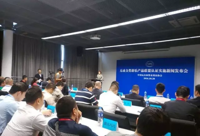 10月20日,中國玩具和嬰童用品協(xié)會(huì )在上海召開(kāi)新聞發(fā)布會(huì ),發(fā)布《無(wú)動(dòng)力類(lèi)游樂(lè )產(chǎn)品聯(lián)盟認證規則》,針對無(wú)動(dòng)力類(lèi)兒童滑梯和秋千產(chǎn)品實(shí)施聯(lián)盟認證(以下簡(jiǎn)稱(chēng)聯(lián)盟認證),相關(guān)認證機構、檢測機構、生產(chǎn)企業(yè)和媒體代表參加了會(huì )議。國家認監委認證監管部、教育部教育裝備研究與發(fā)展中心的領(lǐng)導出席會(huì )議并講話(huà)。